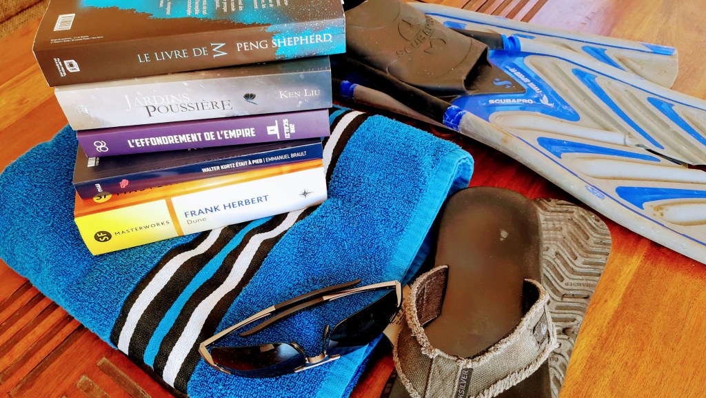 Halte-là toi qui prépares ta valise ! Tu as pensé à la crème solaire anti-rayons gamma au cas où une supernova péterait dans le voisinage, à ton t-shirt à licorne favori pour siroter des arc-en-ciels à l’apéro, et à tes tongs death-metal pour redécorer les dunes de sable de motifs à la gloire du grand cornu, mais as-tu pensé à emmener de la lecture ? Ah ! Comme tous les ans, tu le sais, tu vas t’ennuyer à la plage alors les livres seront tes amis. Je te propose une liste de cinq ouvrages de science-fiction pour parfaire ton bronzage et garder la ligne cet été.