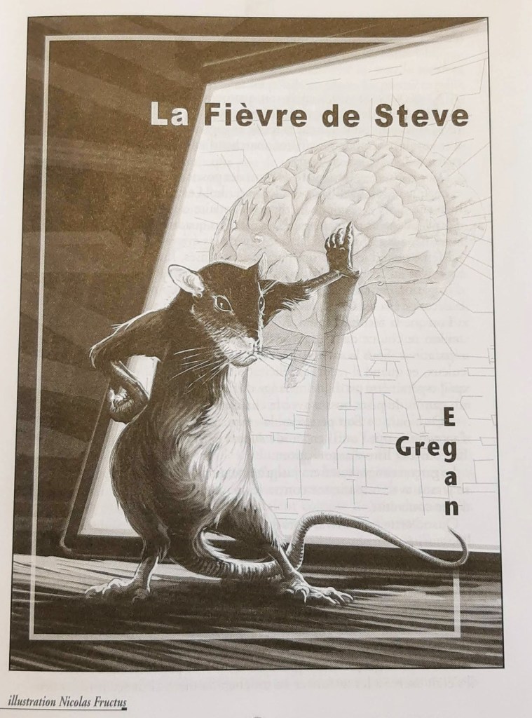 Le numéro 101 de la revue Bifrost, qui se trouve être la meilleure revue de SF de l’univers (je suis corrompu), contient une nouvelle de Greg Egan que je ne connaissais pas. Celles-ci sont rares, mais elles existent, pour mon plus grand plaisir. Il s’agit ici de La Fièvre de Steve, sous une traduction d’Erwann Perchoc (Steve’s Fever, MIT Technology Review, 2007).
