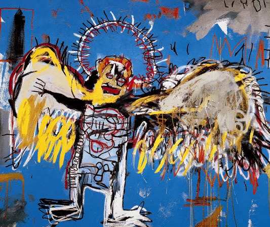 L’I.A. ne comprend pas Basquiat. Elle en est incapable. C’est un gouffre au centre de son existence, la pièce maîtresse qui l’empêche encore de pouvoir se comparer à son créateur, à l’homme, à dieu. Prenant pour exemple le tableau Fallen Angel (1981), puis d’autres œuvres du peintre new-yorkais, elle analyse, mesure, compte, pèse et détricote, cherche mais ne comprend pas. L’I.A. se perd dans une sémiotique des formes et livre des descriptions cliniques :