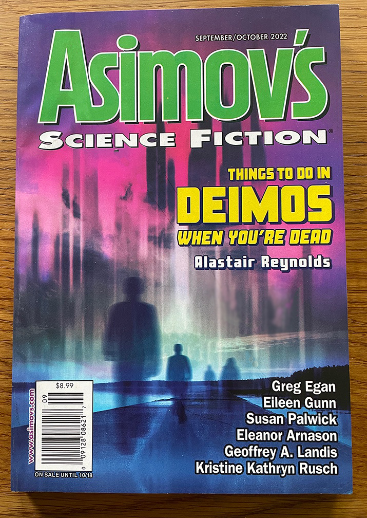 Comme le fait aussi en France la revue Bifrost, le magazine américain Asimov’s science fiction organise un vote auprès de ses lecteurs pour élire les meilleurs textes publiés dans ses pages chaque année. Après le premier tour, le magazine rend accessible, en ligne et gratuitement, le top 5 des textes dans chacune des catégories : novella, novellettes, nouvelles et poèmes. Vous pouvez les lire à cette adresse. Asimov’s fonctionnant par abonnement, il n’y a habituellement pas d’intérêt à ce que je vous parle des textes qui y sont publiés, sauf en cette occasion où ils deviennent accessibles à tous. C’est le cas de Solidity, un texte publié dans le numéro de septembre/octobre 2022 et signé par le maître de la hard-SF et chouchou de ce blog, Greg Egan.