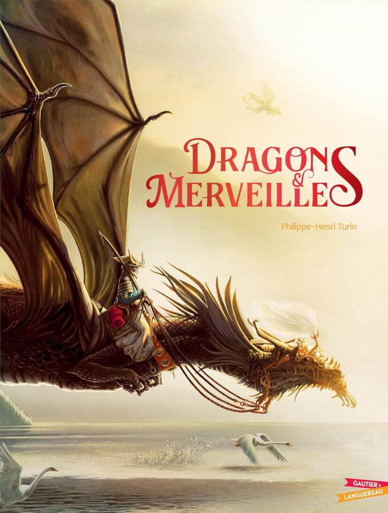 Dragons et merveilles est du genre inclassable. Il s’agit d’une sorte d’encyclopédie dessinée et mise en texte par l’illustrateur lyonnais Philippe-Henry Turin, dont on devine rapidement qu’il s’agit d’une œuvre très personnelle, qu’il a dû produire au long cours avec une passion et une fascination pour son sujet venues, on le devine aussi, de l’enfance. Il est publié chez l’éditeur jeunesse Gautier-Languereau.