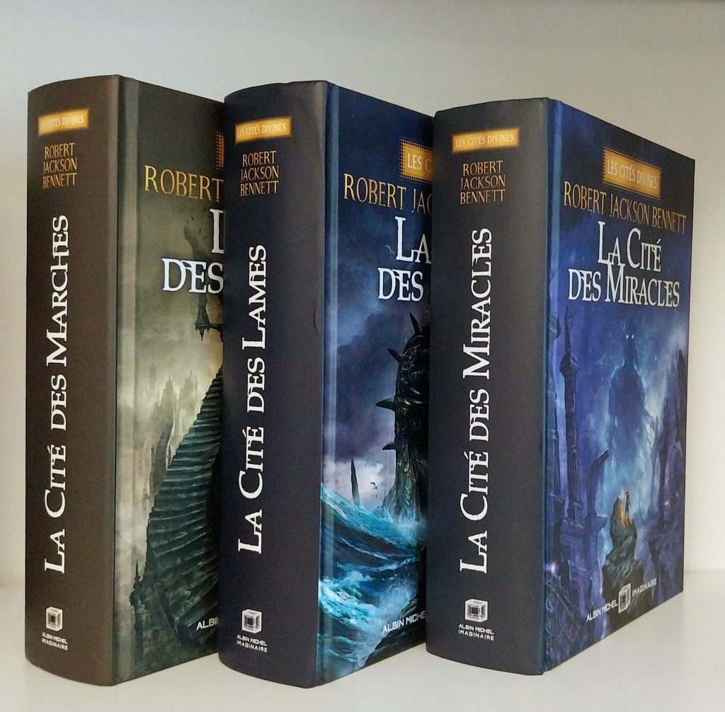 Disponible demain, le 26 février 2025, dans toutes les bonnes librairies, La Cité des miracles vient conclure la trilogie des Cités divines de Robert Jackson Bennett. Dans sa version originale en anglais, la trilogie a été écrite et publiée il y a une dizaine d’années, entre 2014 et 2017. Le laps de temps écoulé avant sa parution en français chez Albin Michel Imaginaire a permis une chose rare et fort appréciable pour le lecteur, à savoir des sorties rapprochées, à six mois d’intervalle, ne nous laissant pas le temps de tout oublier de l’univers et des protagonistes. Qui plus est, AMI a fait les choses en grand puisque les premières éditions de la trilogie sont dans un format relié, à tirage limité. Une édition plus habituelle brochée suivra, le premier volume de la série étant déjà disponible sous ce format depuis août 2024. La Cité des miracles fait donc suite à La Cité des marches, publié en février 2024, et à La Cité des lames, publié en octobre 2024. Souvent, la question qui se pose pour les romans inscrits dans un cycle est celle de la possibilité de les lire indépendamment les uns des autres, comme c’est le cas par exemple pour le cycle de la Culture d’Iain M. Banks. Dans le cas de la trilogie des Cités divines, les volumes se suivent, mais proposent une histoire complète, avec un personnage principal différent. Toutefois, les bases de l’univers ont été posées dans le premier volume, La Cité des marches, et l’on suit un groupe d’individus depuis les premiers temps du récit. Inévitablement, chacun des tomes fait référence à des événements passés et lire La Cité des miracles sans les volets précédents n’aurait pas grand sens.