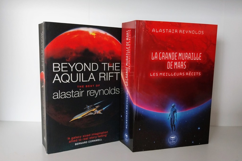 En 2017, la maison d’édition britannique Gollancz publiait un best of des nouvelles d’Alastair Reynolds sous le titre Beyond the Aquila Rift. Le recueil rassemblait vingt textes écrits sur une quinzaine d’années. J’en avais déjà parlé à plusieurs reprises sur ce blog, l’ayant découvert en 2020. Emerveillé par la qualité des récits réunis, j’en étais même venu à rêver qu’un éditeur français s’en empare un jour pour le faire traduire et le proposer au lectorat francophone. C’est désormais chose faite grâce au travail des éditions du Bélial’, qui œuvrent depuis plusieurs années à redonner à l’auteur gallois la présence, méritée et nécessaire, qu’il doit avoir en librairie.